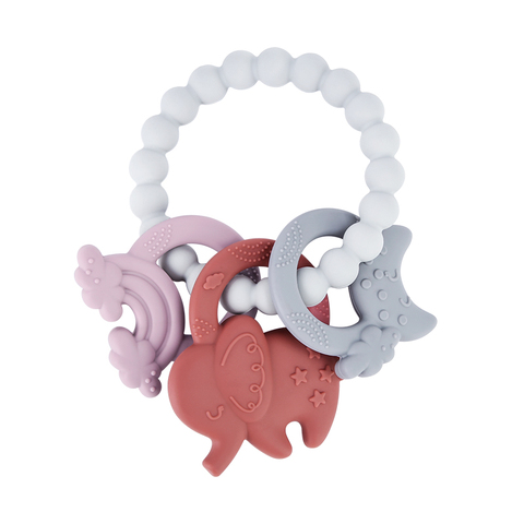 وصل حديثًا خالٍ من مادة BPA ، حلقات عضاضة للأطفال من السيليكون ، سوار فيل وقمر قوس قزح ، لعبة مضغ للأطفال الرضع